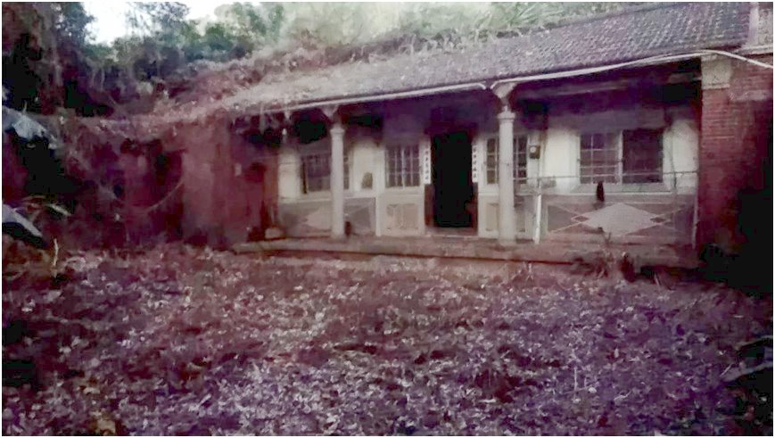 座落在二水坑口村山腳路附近陳簒地殘破不堪的老宅。將近八十年歲月後,正廳前洗石子的圓柱還非常堅固。但是,坐東南朝西北老宅右邊廂房,因家破人亡,日久失修,已經殘破不堪!(2024年2月20日蔡吉源攝於二水坑口村山腳路東側陳家老宅)