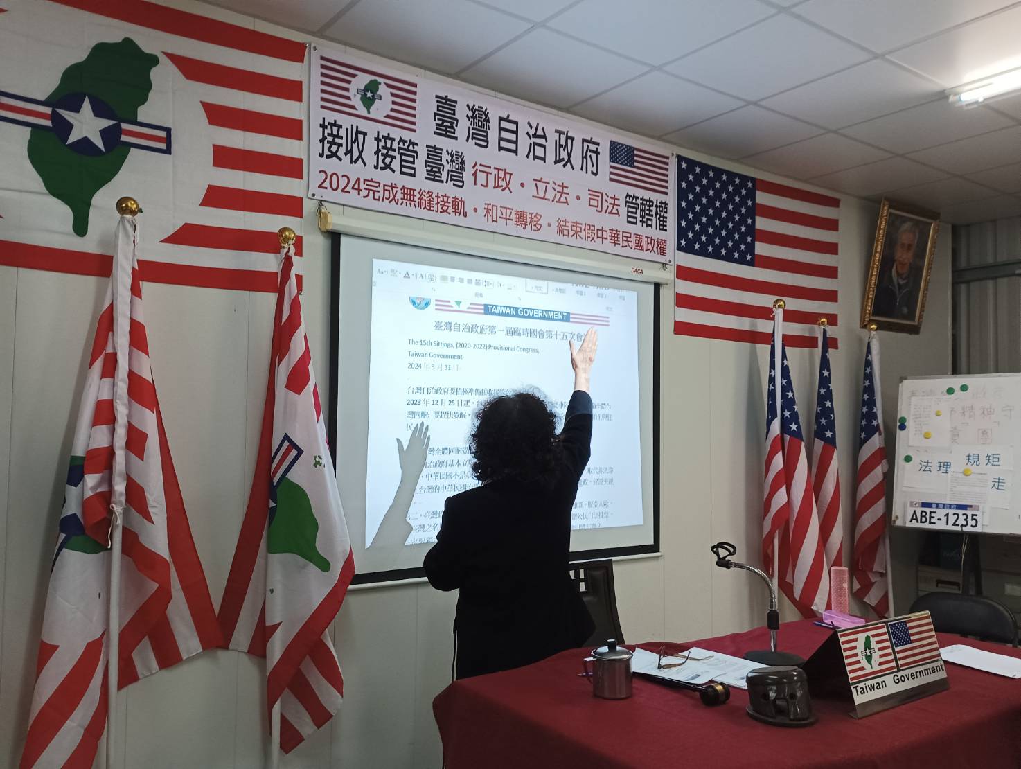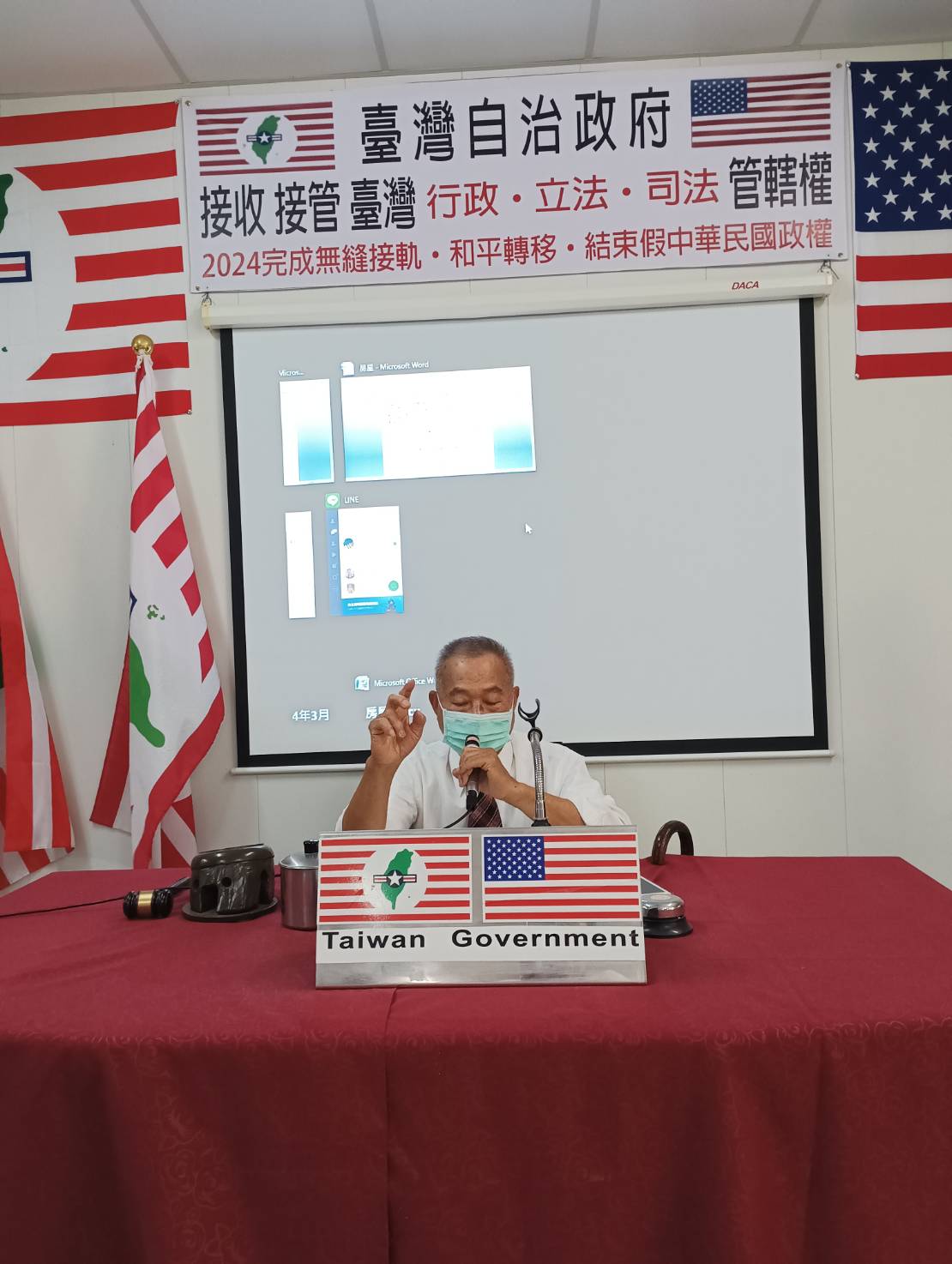 1、2013年4月25日在美國華盛頓DC向世界宣告臺灣自治政府成立。2、2014年7月7日進入中興新村行政大樓向全臺灣人民公告,臺灣自治政府(臺灣政府)宣傳啓蒙法理地位讓人民覺醒,並開始組織運作,管理本土住民(公民)的公共事務。3、2022年12月7日與17日,臺灣自治政府全面收回臺灣、澎湖21條主要河川主權和臺灣澎湖領土主權,並發文公告周之。